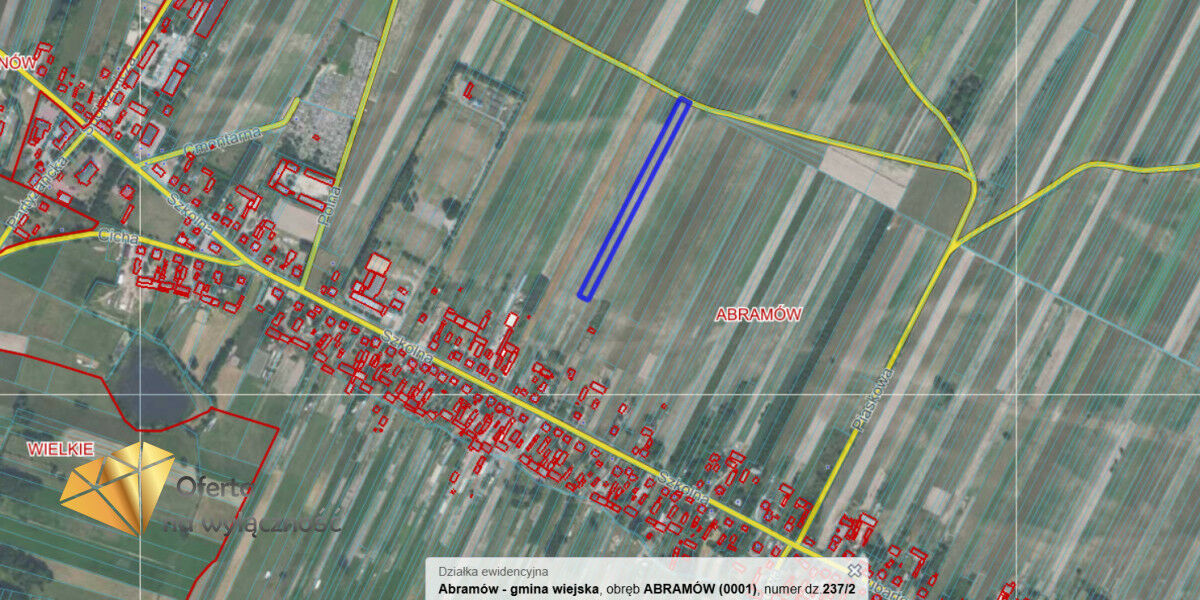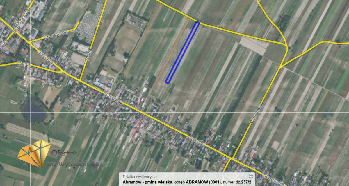 Oferta dostępna wyłącznie za pośrednictwem Franczewska Nieruchomości.Nieruchomość gruntowa w miejscowości Abramów, gm. Abramów, powiat Lubartów.